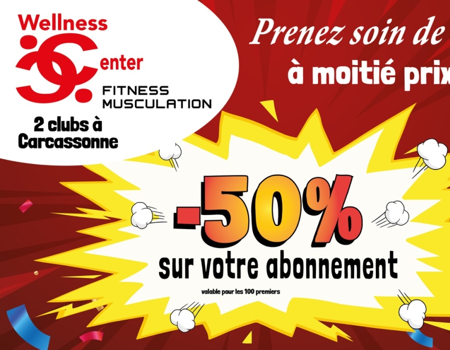 Prenez soin de vous à moitié prix. Profitez dès maintenant de -50% sur votre abonnement Wellness Center. * Fitness, musculation, accompagnement personnalisé, ...